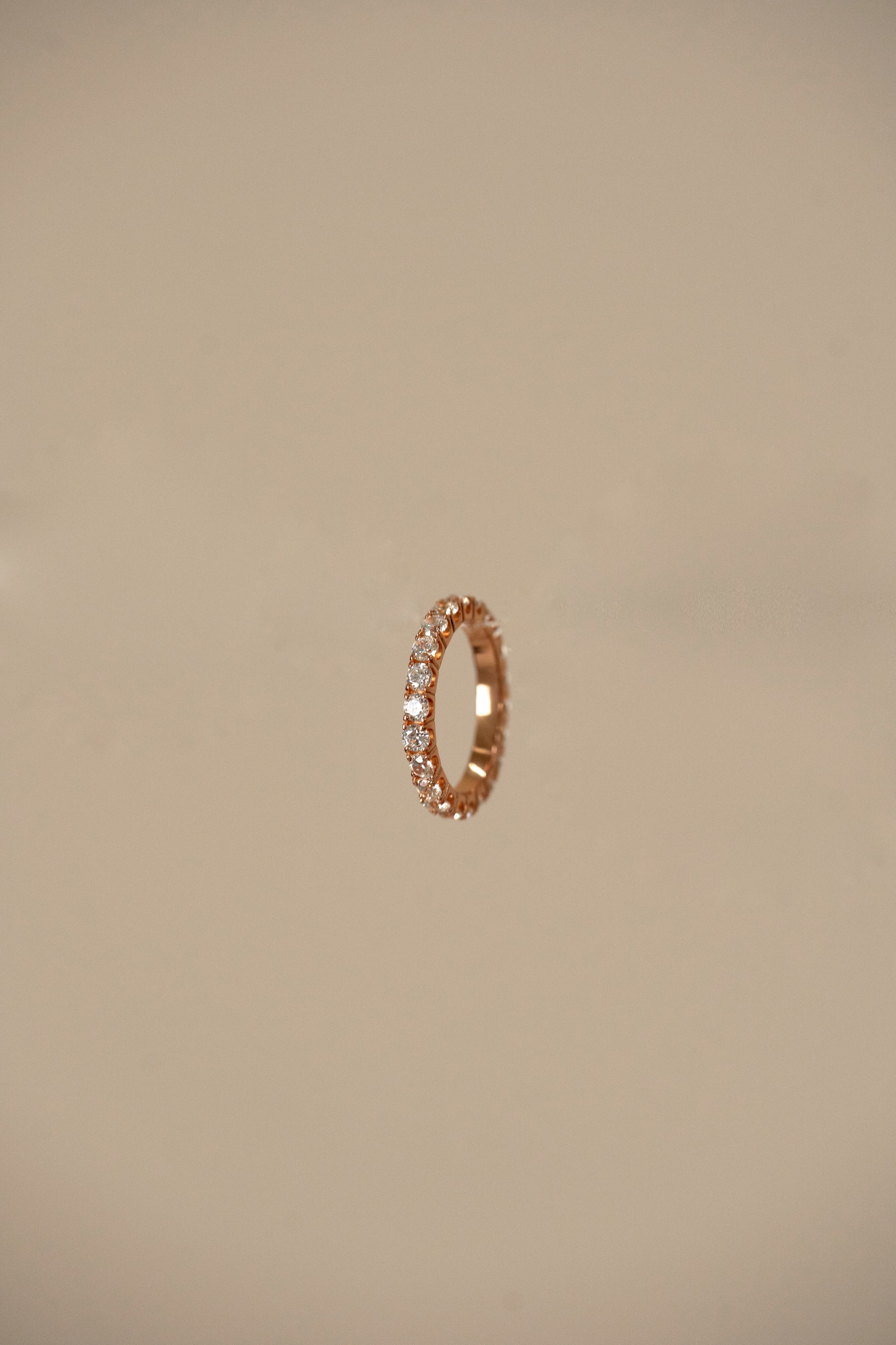 Kombiniere ihn mit einem ähnlichen Ring oder lass ihn als Einzelstück wirken. Rundum mit funkelnden Edelsteinen besetzt, strahlt er bei jeder Bewegung und wird dir bei jedem Anlass Freude bereiten
